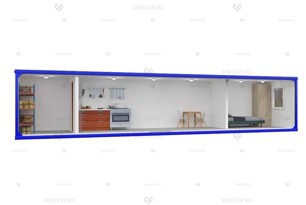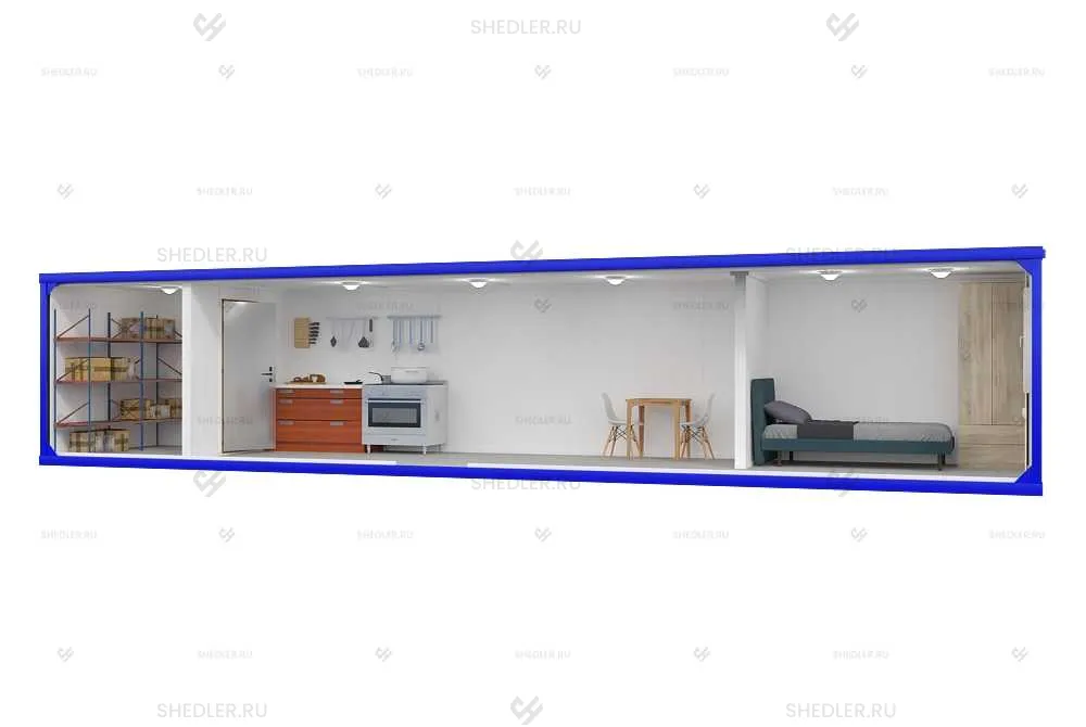 Блок-контейнер БК-01 SHEDLER – это мобильное здание, которое устанавливается без предварительных согласований и заливки фундамента. Большая вместительность предопределила сферы применения: модель БК-01 используется для расселения людей на стройках, в качестве мобильного офиса.