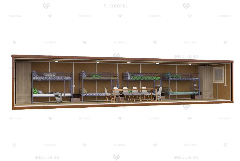 На макетах представлен стандартный комплект контейнеров, по вашему запросу мы можем укомплектовать контейнер техникой и мебелью.