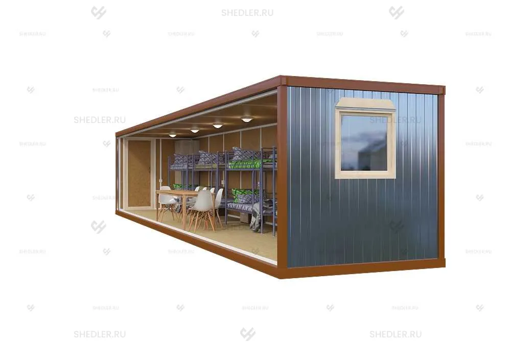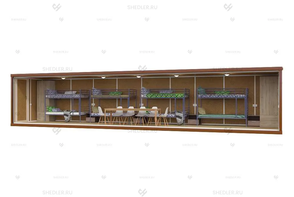 Одноэтажный блок-контейнер размером 12,0 x 2,45 х 2,45 м и площадью 29,4 кв.м обладает большой вместительностью, что позволяет использовать его для размещения людей и имущества. Помещение быстро и легко устанавливается, стоит на порядок дешевле капитальных сооружений. Удлиненный блок-контейнер БК-45 SHEDLER монтируется сразу на грунт или любую поверхность, заливка фундамента не требуется.