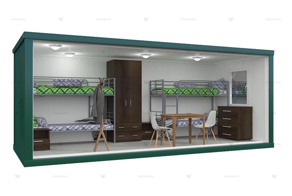 На макетах представлен стандартный комплект контейнеров, по вашему запросу мы можем укомплектовать контейнер техникой и мебелью.