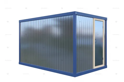 Бытовка изготавливается на основе сварного металлического каркаса. Сверху обшивается профлистом или сэндвич-панелями. Внешняя сторона окрашивается в любой цвет на выбор из палитры RAL.
