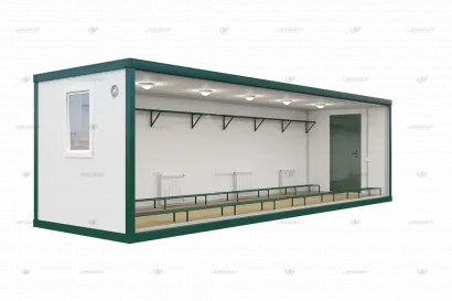 Блок контейнер сушилка может быть изготовлена как из одного, так и из нескольких контейнеров, в зависимости от количества сотрудников, которые буду ею пользоваться. Также, ее функционал можно расширить и установить необходимое количество перегородок, которые будут образовывать тамбур, раздевалку и санузлы с умывальниками или душем. Рабочие смогут после смены зайти, снять мокрую одежду, согреться, умыться и помыть руки и переодеться в одном помещении.