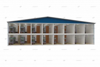 Блок-модульное общежитие от SHEDLER включает несколько объектов, подходящих для того, чтобы жить там постоянно. В него может быть включено 2 и более блок-контейнеров, которые размещают в линию либо ставят друг на друга. Надежная основа из швеллера не боится даже сильных нагрузок, поэтому часто заказчики выбирают 2-этажные здания.
