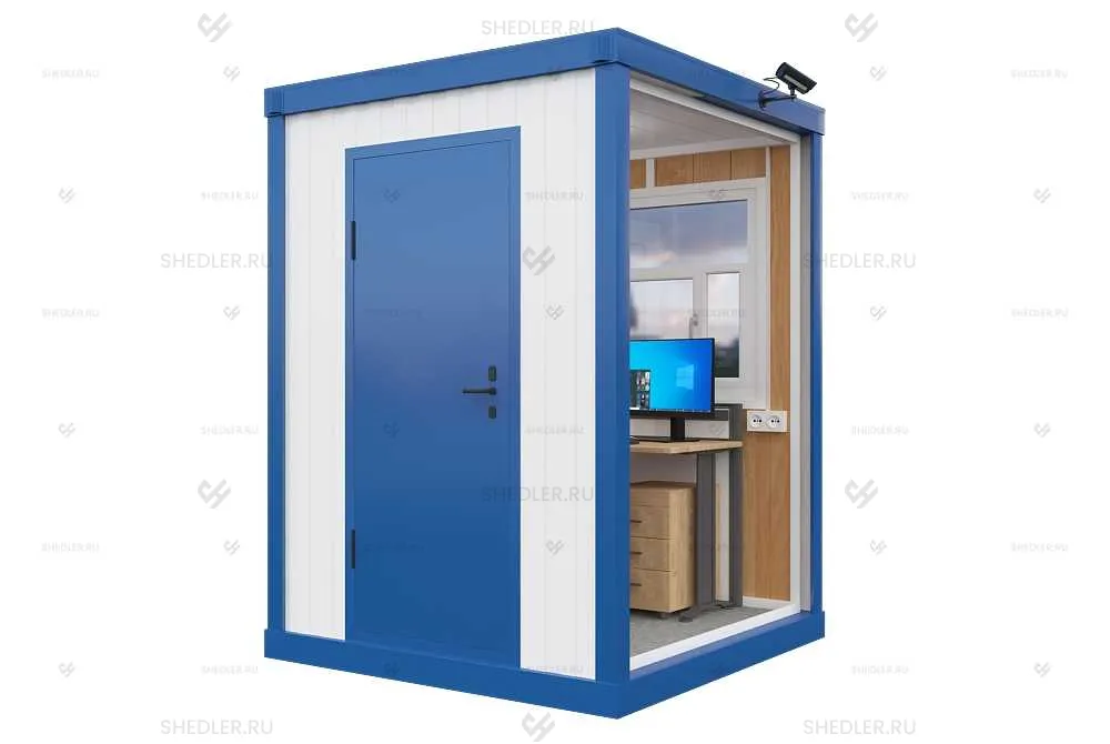 Модульный пост охраны БК-016 SHEDLER 1,8×1,8 метра предназначен для монтажа охранных постов. Внешняя обшивка выполнена оцинкованным профилем марки С8, обеспечивающим повышенную прочность и устойчивость к внешним факторам. Компактные размеры позволяют размещать конструкцию на стройплощадках, парковках, на территориях промышленных и коммерческих предприятий.