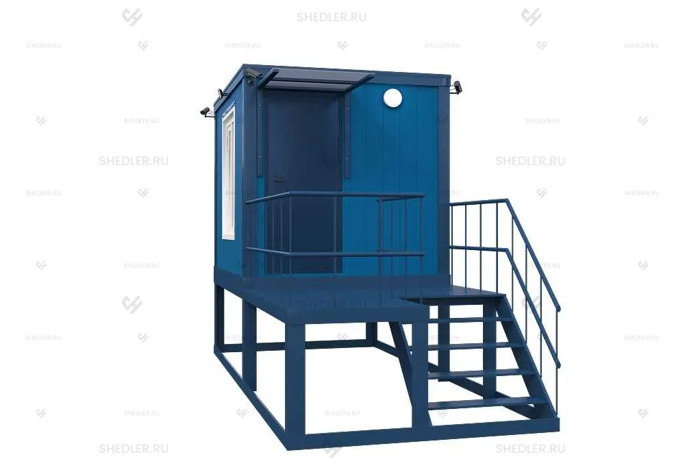 Пост охраны ПБК-15 SHEDLER – это быстровозводимое помещение на металлическом подиуме, предназначенное для несения службы сотрудниками безопасности. Благодаря подиуму охранник может более эффективно контролировать территорию стройплощадки, садоводческого товарищества, дачного кооператива или другой вверенной ему территории.