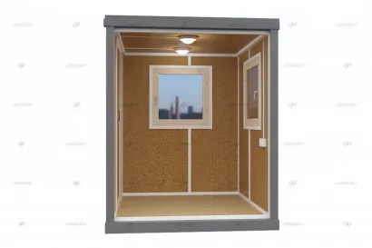 Внутренняя отделка выполнена из пластиковой вагонки. Внутри обрешетка из бруса, утепление стен, пола и потолка материалом «URSA» 50 мм. В БК-016 установлена электрика. Есть все условия для комфортной работы охранника внутри мобильного поста охраны.