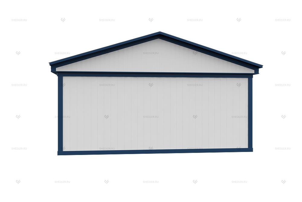 Двускатная кровля состоит из мауэрлата, стропил, конька, стоек, опор и других элементов. Стропильная система может быть двух видов – висячей и наслонной. В качестве кровельного материала может выступать профлист С8, который крепится специальным крепежом к обрешётке. Угол наклона может быть 10 или 12 градусов, в зависимости от ширины конструкции. Используется для модульных зданий различного назначения: офис, штаб строительства, общежитие и т.д.