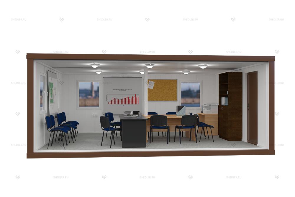 На макетах представлен стандартный комплект контейнеров, по вашему запросу мы можем укомплектовать контейнер техникой и мебелью.