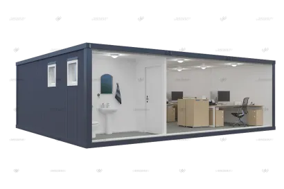 Помимо сантехнических и бытовых помещений внутри могут быть предусмотрены жилые комнаты. Организация внутреннего пространства подобных объектов регламентирована требованиями ГОСТ Р 71617-2024. Нормы государственного стандарта выполняются различными способами: под отдельные кабинеты выделяются блок-контейнеры целиком или интерьер одного модуля делится каркасными перегородками – легкими конструкциями, которые при необходимости позволяют выполнить перепланировку помещения.