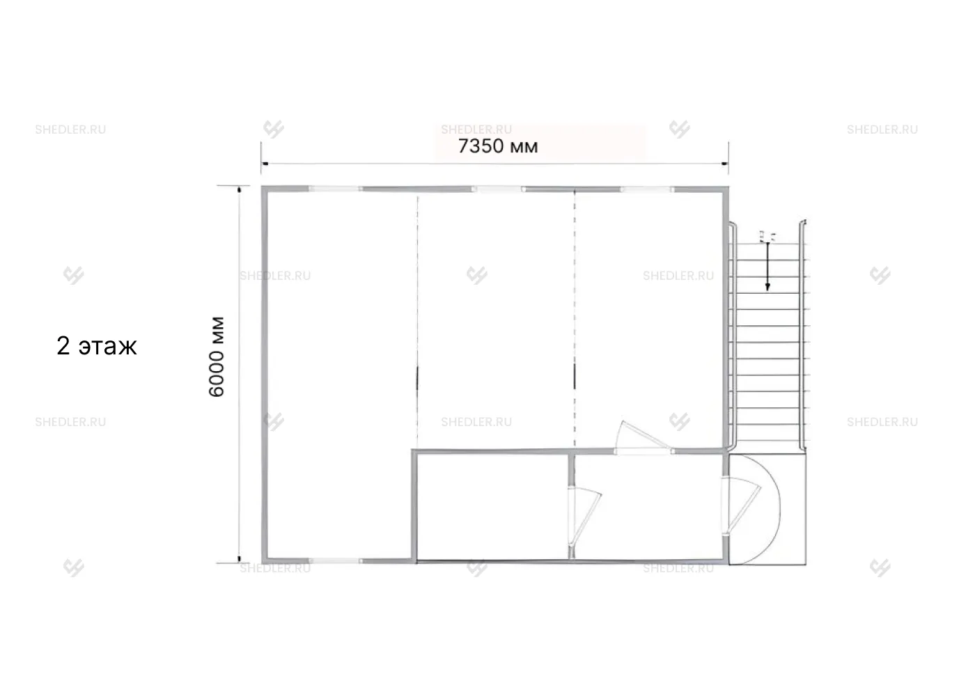 | Лестница | Прямая на 2-й этаж + площадка 1,25 х 1,25 м, 1 шт. |