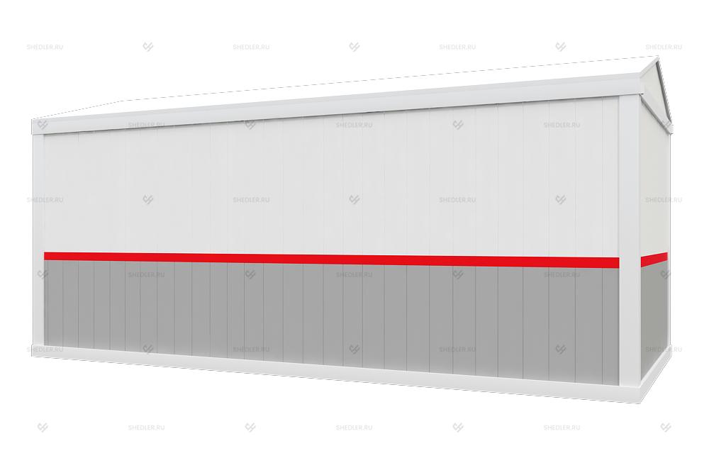 Модель блок-контейнера БК-027 от SHEDLER с двускатной крышей представлена в типовом проекте и с базовой комплектацией. Если нужны другие параметры или сделать внутреннюю отделку, то все обсуждается. Среди доступных отделочных материалов: ДВП, фанера, ОСБ, профлист, ПВХ панели, МДФ, вагонка и другие. На пол можно постелить линолеум, ЦСП, рифленый лист, резиновое покрытие.