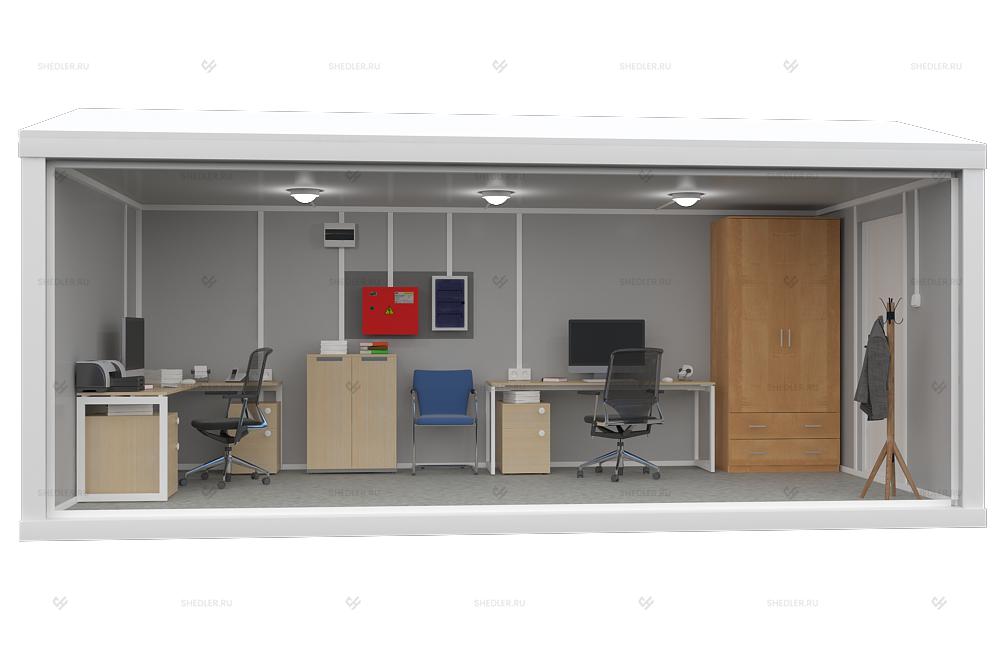 На макетах представлен стандартный комплект контейнеров, по вашему запросу мы можем укомплектовать контейнер техникой и мебелью.