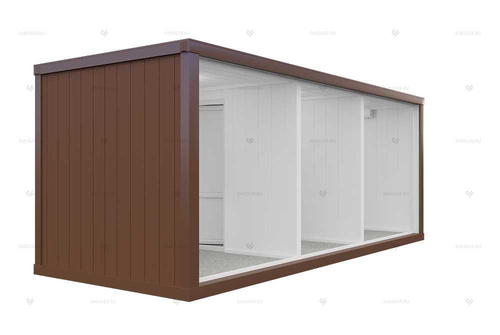 Стандартные размеры контейнера составляют 6000 мм в длину, 2450 мм в ширину и 2500 мм в высоту. Основа конструкции – прочный металлический каркас, обшитый сэндвич-панелями толщиной 100 мм. Такие панели обеспечивают высокие теплоизоляционные свойства, сохраняя тепло зимой и прохладу летом.