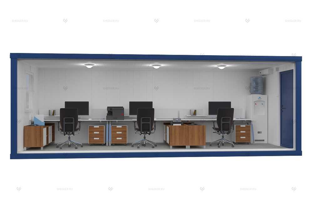 На макетах представлен стандартный комплект контейнеров, по вашему запросу мы можем укомплектовать контейнер техникой и мебелью.