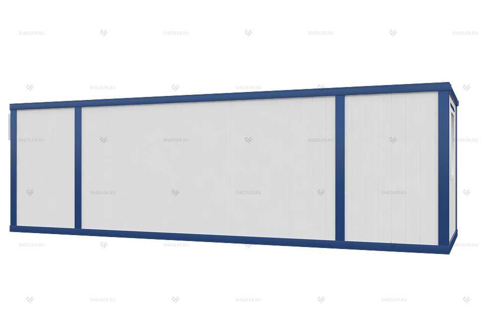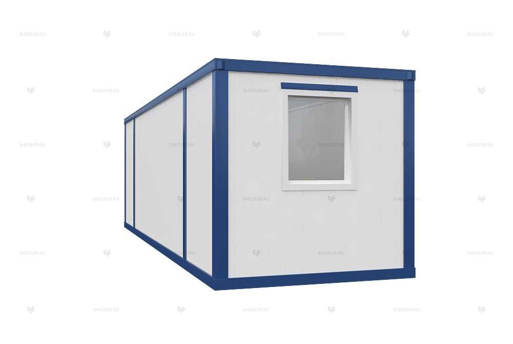 В помещении размером 8,0 x 2,45 х 2,45 м и площадью 19,6 кв.м предусмотрены все элементы, присущие капитальному зданию: утепленная входная дверь из листовой стали с врезным замком и ручками, а также пластиковое окно размером 0,8 x 1,0 м с поворотно-откидным механизмом открывания.