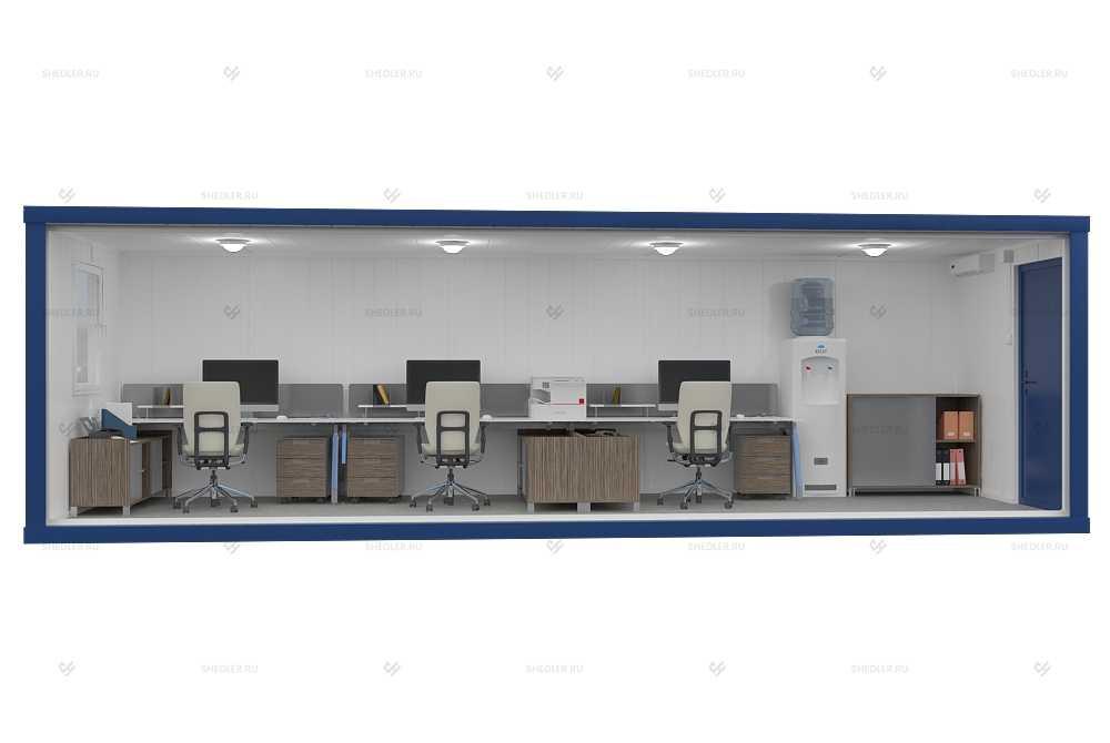 На макетах представлен стандартный комплект контейнеров, по вашему запросу мы можем укомплектовать контейнер техникой и мебелью.