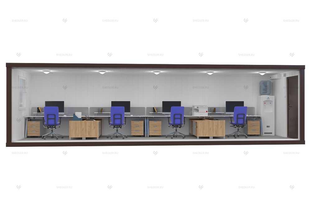 На макетах представлен стандартный комплект контейнеров, по вашему запросу мы можем укомплектовать контейнер техникой и мебелью.
