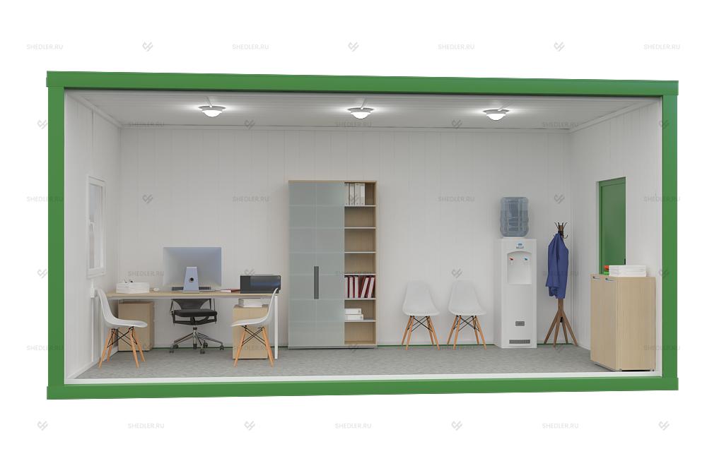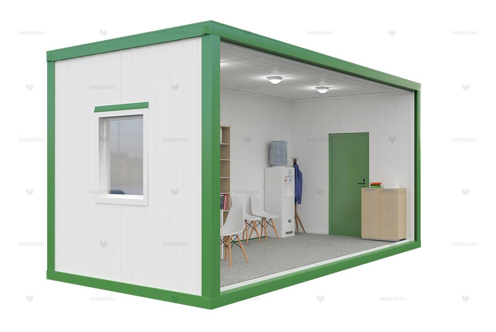 Легковозводимый модуль с габаритами 6м х 2,85м х 3м, увеличенная высота обеспечивает больший объем и дополнительные возможности, в том числе по установке крупногабаритной мебели и оборудования. Блочно-модульное сооружение Шедлер может использоваться в качестве временного жилья, склада или технического помещения.