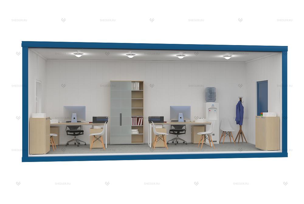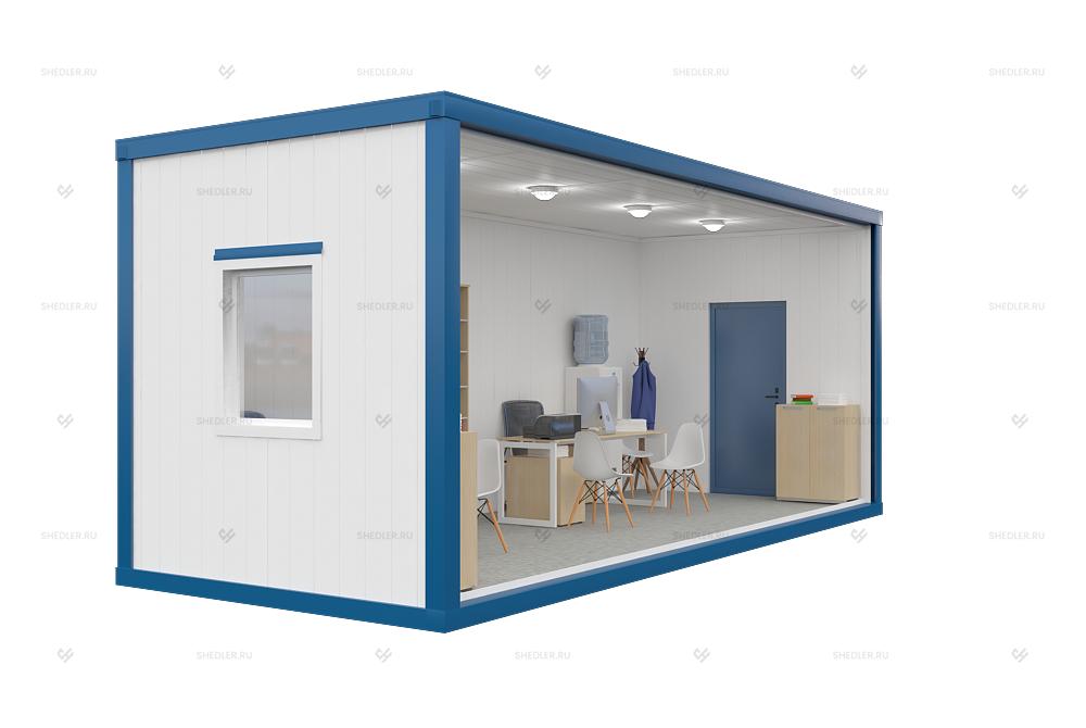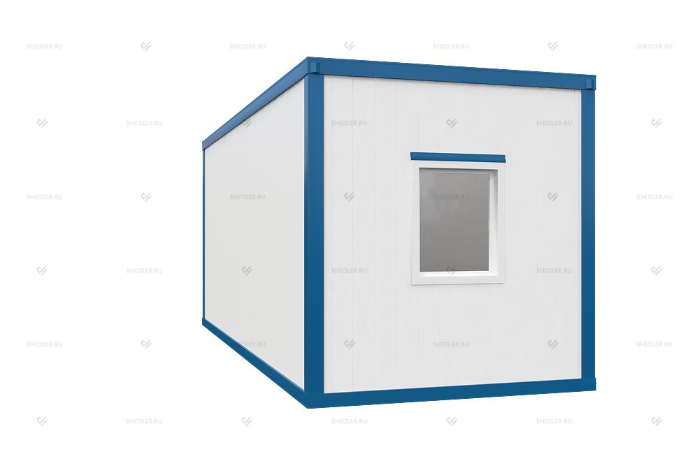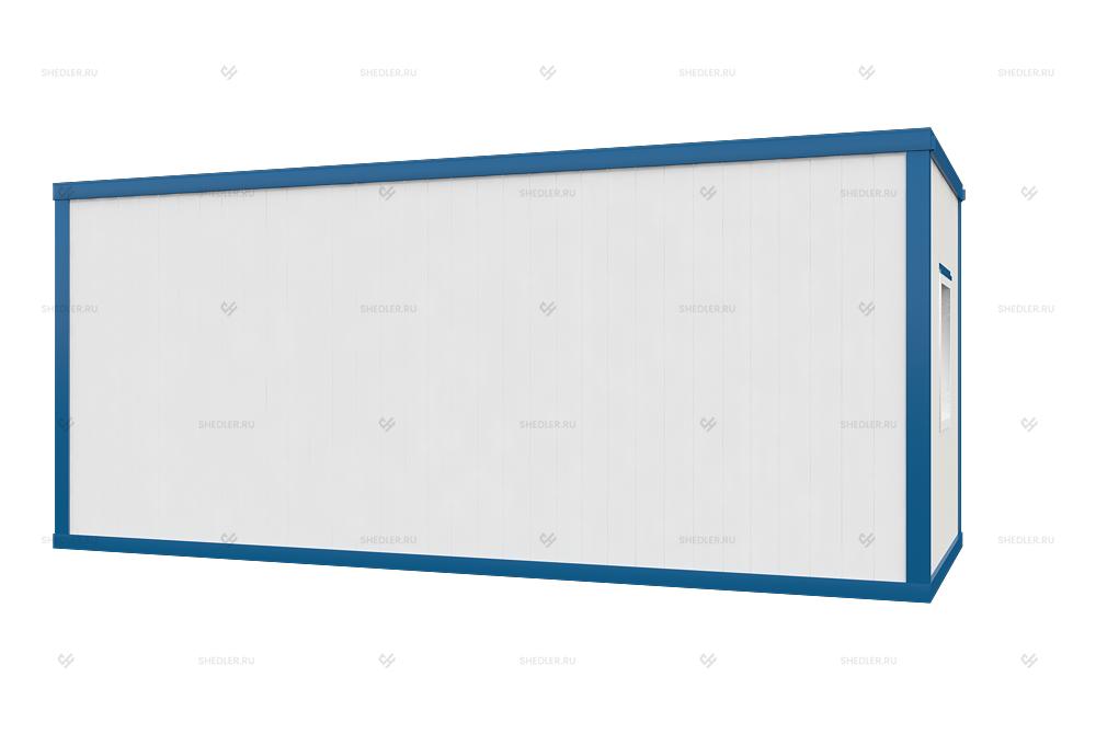 Легковозводимый модуль имеет габариты 7м х 2,85м х 3м, увеличенная ширина и высота существенно расширяет сферу применения. Блок-контейнер с увеличенной шириной и высотой БК-049 от Шедлер может эксплуатироваться в качестве мобильного офиса, жилого помещения, коммерческого или хозяйственно-бытового объекта.