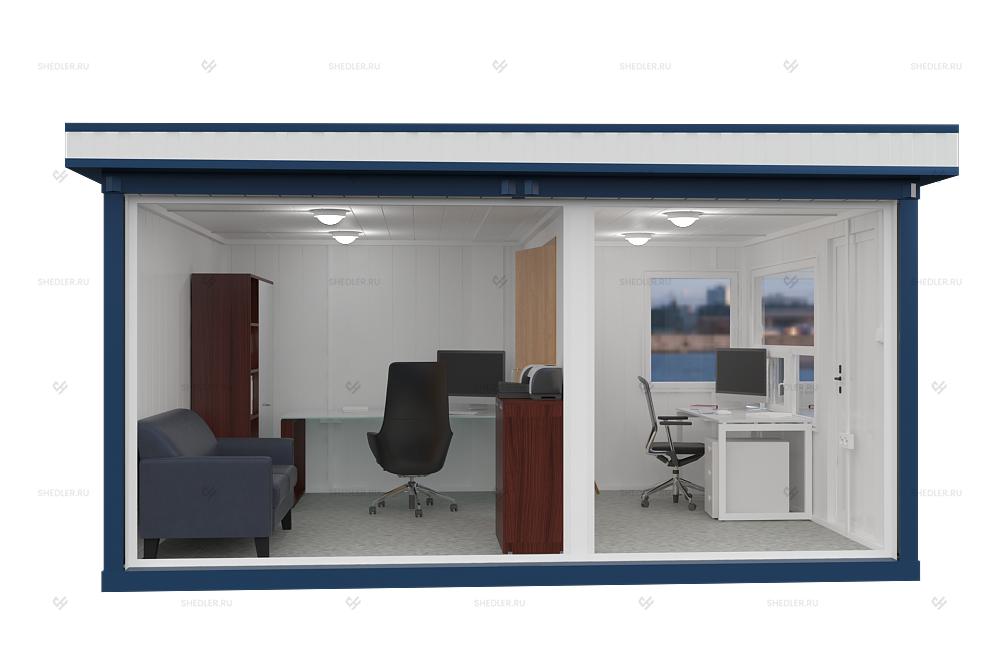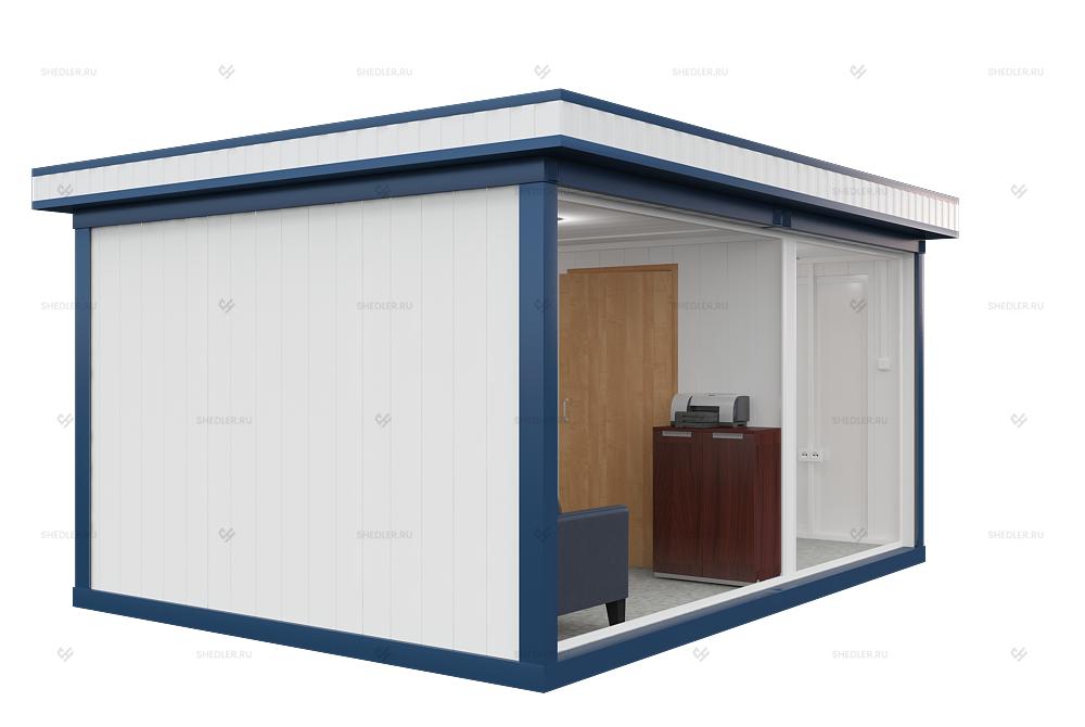 Блочно-модульная конструкция размером 3,6 x 4,8 x 2,45 м состоит из 2 сегментов. Блок-модуль БМ-41СП от Шедлер вобрал в себя преимущества быстровозводимого и капитального объекта: он легко устанавливается, причем без необходимости получать разрешения и заливать фундамент. При необходимости его можно переместить на новое место, продать другому собственнику. Тепло- и звукоизоляция сопоставимы с кирпичными зданиями, то же самое можно сказать про отделку и техническое оснащение.