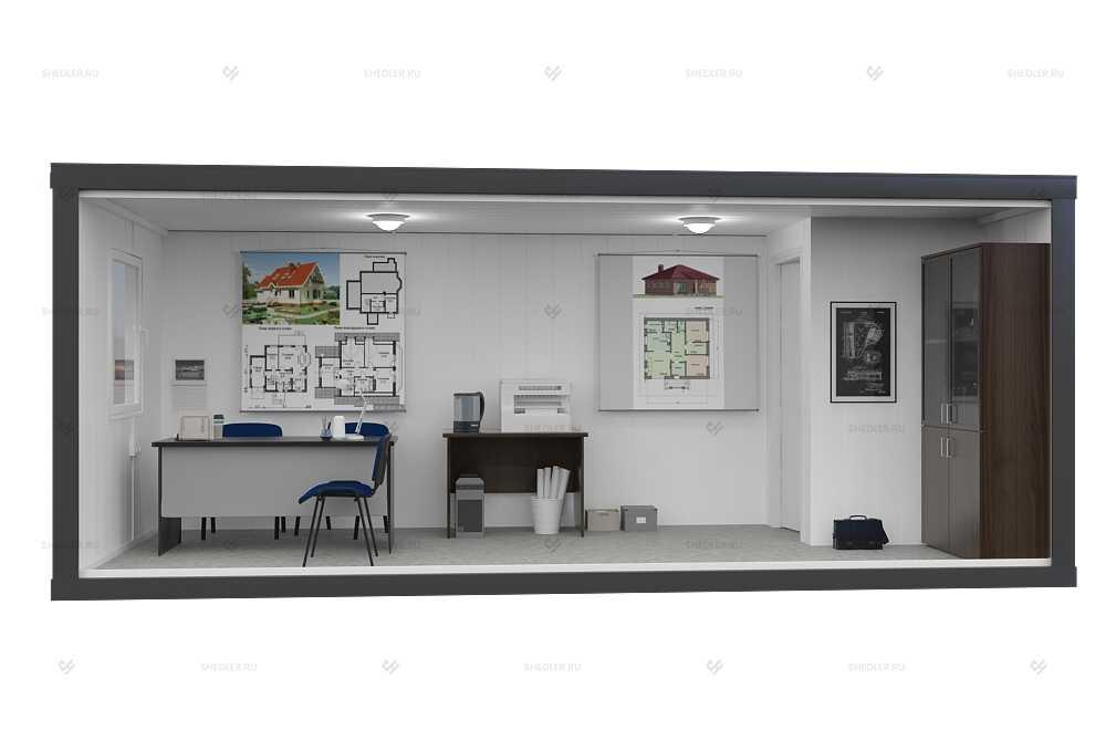 На макетах представлен стандартный комплект контейнеров, по вашему запросу мы можем укомплектовать контейнер техникой и мебелью.
