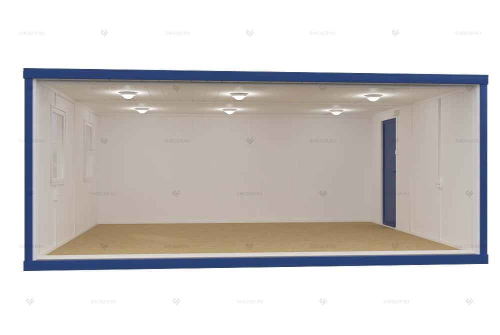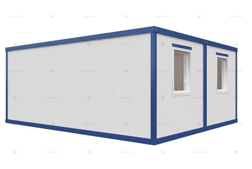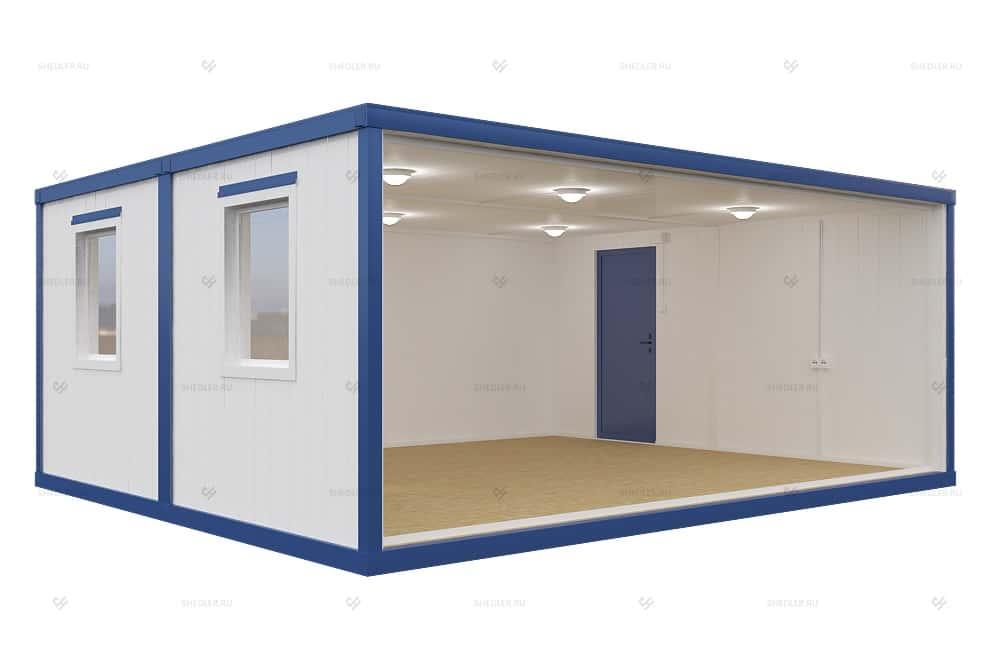 Одноэтажный блок-модуль из 2 блок-контейнеров от SHEDLER соединенных длинной стороной представляет собой удобное сооружение для разного рода задач. Размер помещения составляет 6,0 x 4,9 x 2,45 м, а площадь – 29,4 кв.м, этого вполне достаточно, чтобы организовать как жилое пространство, так и мастерскую. Благодаря увеличенным габаритам может использоваться в промышленности, строительстве, для быстрого возведения социальных объектов.