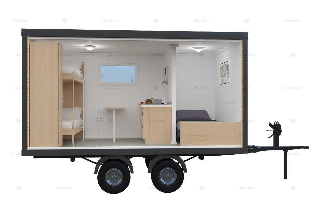 Блок-контейнер КБК-02 SHEDLER – вместительный, но при этом компактный модуль широкой области применения. Одноэтажный быстровозводимый модуль размером 4,00 x 2,45 x 2,45 м и площадью 9,8 кв.м на 4 колесах 16’’. Дом на колесах обладает высокой мобильностью, обеспечивает комфортные условия для проживания.