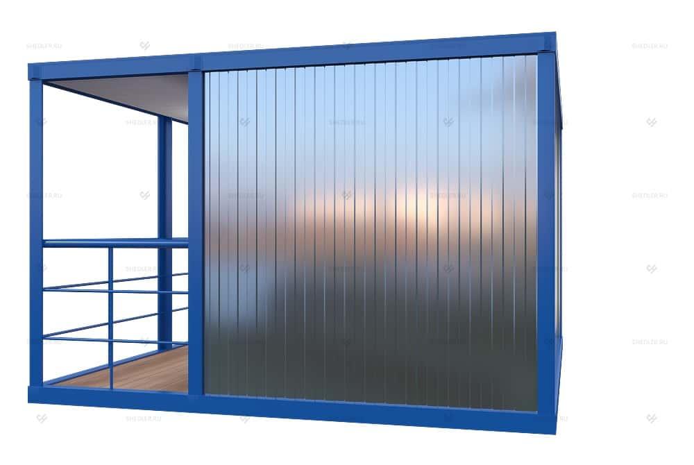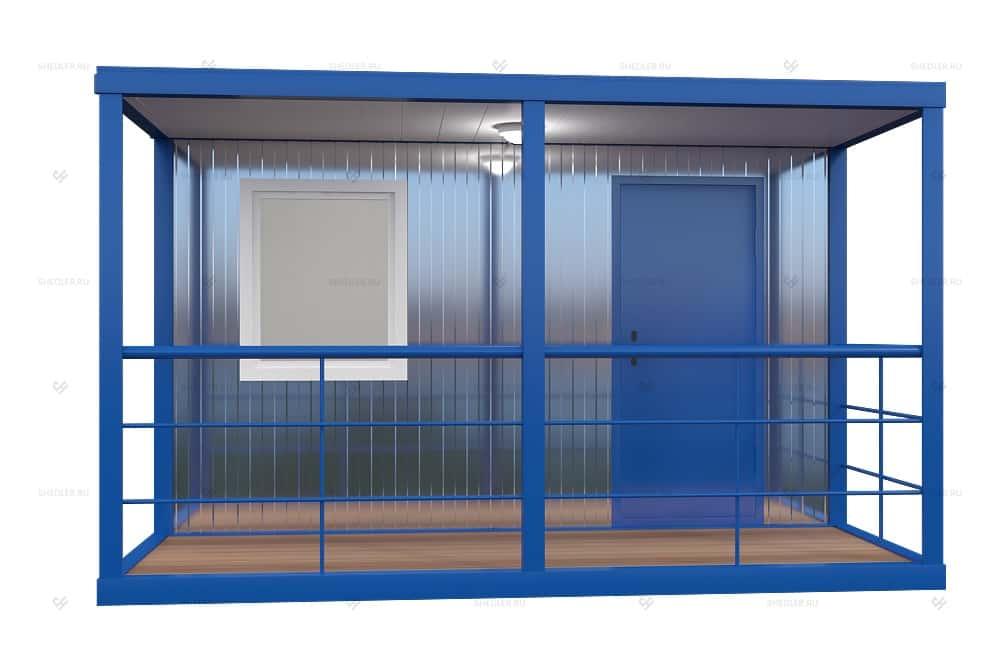 При необходимости клиент может скорректировать материалы отделки и техническое оснащение модуля, эти детали уточняются при согласовании проекта. Доставка блок-контейнера с верандой БКВ-01 4м от SHEDLER выполняется в оговоренный день - конструкцию привезут длинномером собранную и установят на подготовленное место. Специального фундамента не нужно - подойдет любая ровная и прочная поверхность. Такое сооружение в дальнейшем можно будет перевезти и установить на новом месте.