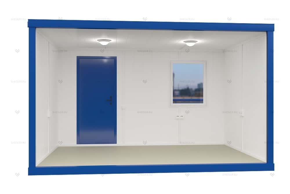 Для защиты от сквозняков установлено ПВХ-окно с двойным остеклением размером 0,8 x 1,0 м. Для управления им предусмотрен поворотно-откидной механизм открывания. Защиту от проникновения посторонних лиц гарантирует облицованная листовым железом дверь из ДВП с врезным замком. Внутри могут быть установлены перегородки, разделяющие помещение на несколько комнат. Так, можно сделать комнату отдыха, спальню, кухню или санузел.