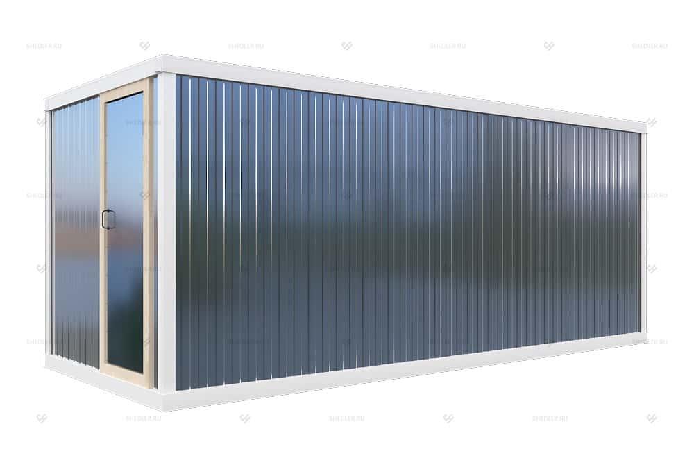 Блок контейнер СБК-04 - это модульный вагон-туалет, который состоит из одного блока и имеет размеры 5,85 х 2,45 х 2,45 м (ДхШхВ), что обеспечивает площадь 14 кв.м. Каркас изготовлен из швеллера размером 120 мм и уголка размером 90 мм для надежности и прочности.