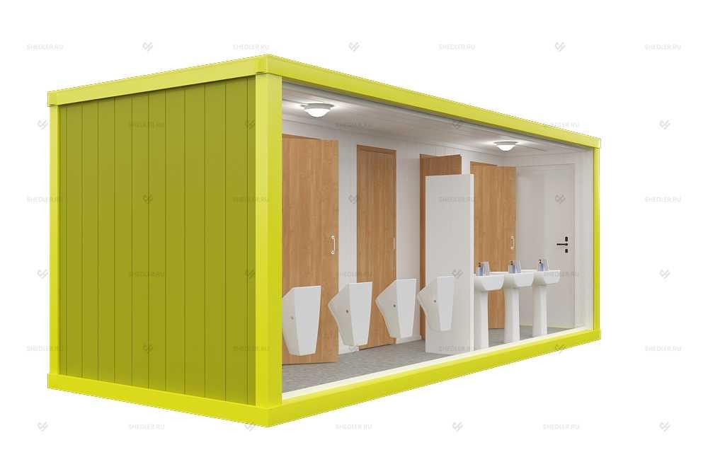 Сантехнический блок-контейнер СБК-03 СП SHEDLER быстро монтируется, для него не нужно делать капитальное основание, подойдет любая, даже грунтовая, поверхность. Это позволяет в любой момент демонтировать конструкцию и перевезти на новый объект.