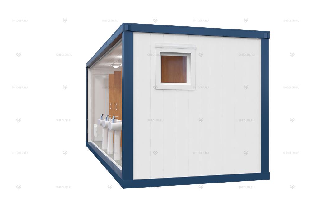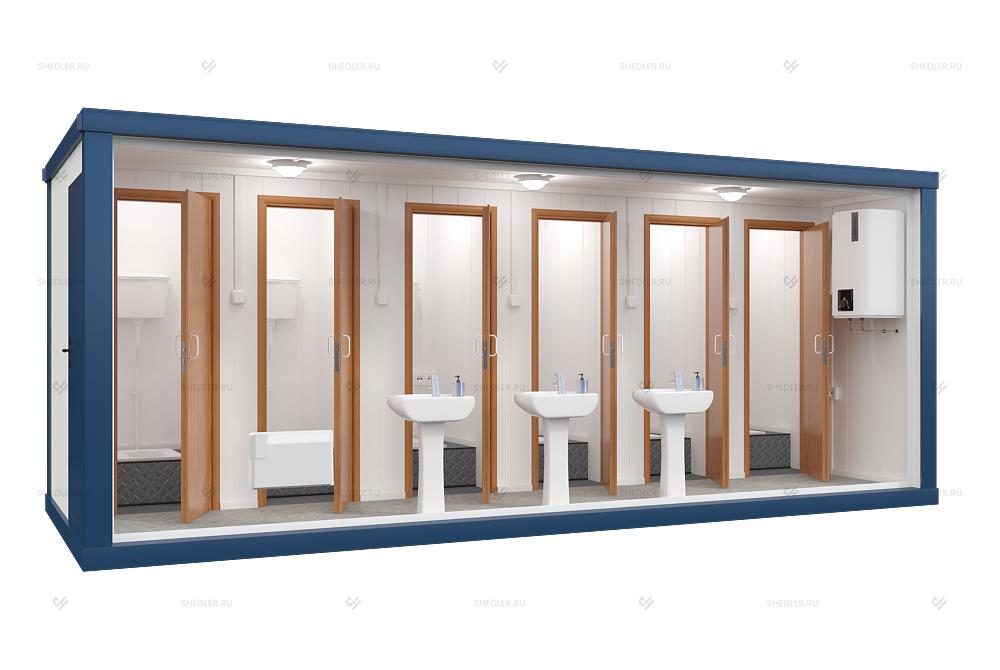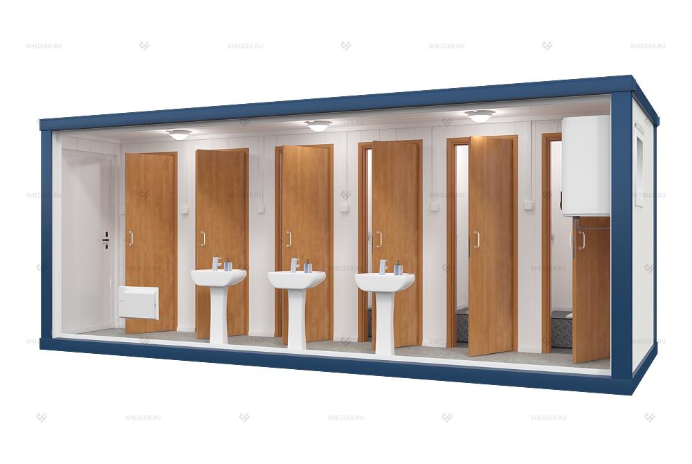 Сантехнический блок-контейнер СБК-20 от Шедлер – это компактное и высокомобильное помещение, оборудованное сантехникой, которое предназначено для удовлетворения естественных потребностей людей в удаленных локациях – на стройплощадках, в вахтовых поселках, на АЗС и других объектах придорожной инфраструктуры.