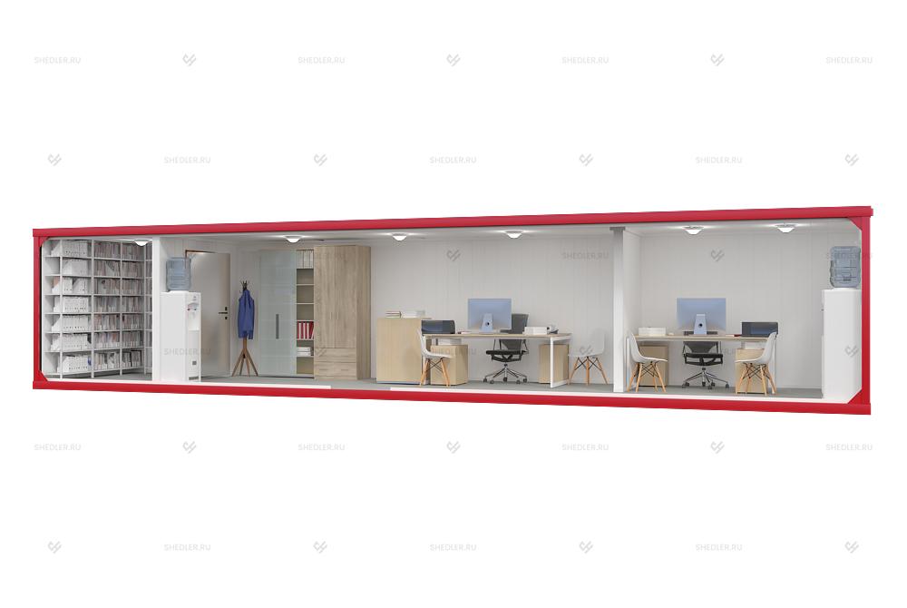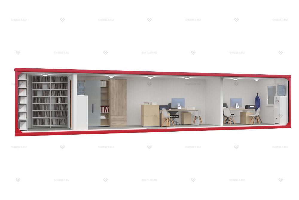 На макетах представлен стандартный комплект контейнеров, по вашему запросу мы можем укомплектовать контейнер техникой и мебелью.