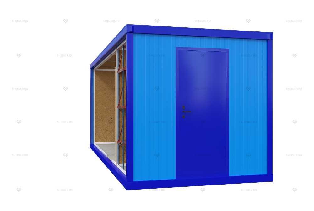 Блок-контейнер БК-036 SHEDLER собран на основе сварного каркаса из швеллера 120 мм и уголка 90 мм, к которому крепится кровля из горячекатаной листовой стали 0,7 мм с полимерным окрашиванием и стены из цветного профлиста. Такая основа обеспечивает прочность и герметичность помещения.