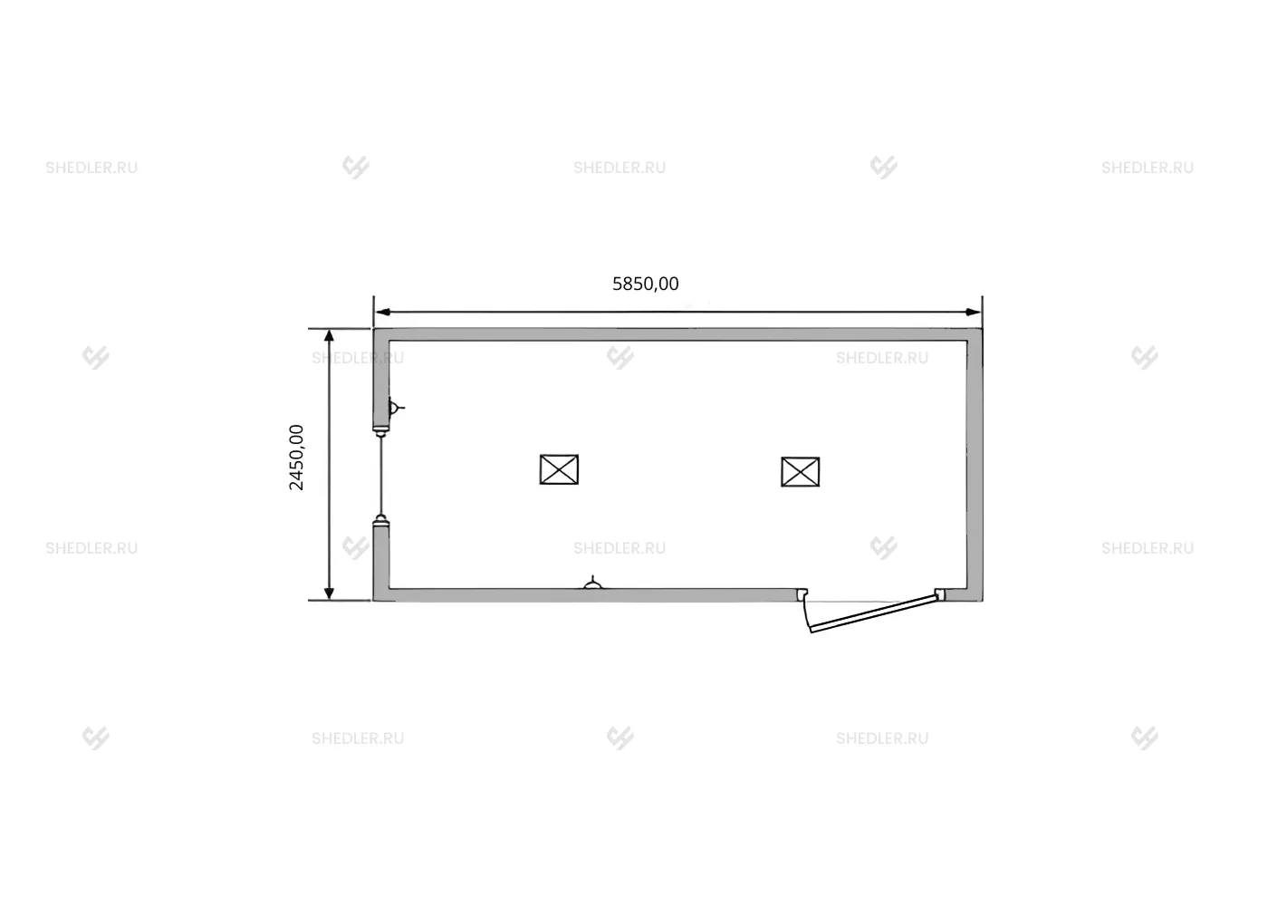 База сооружения – сварной каркас из стального швеллера 120 мм и уголка 90 мм. Благодаря ему контейнер с оцинкованным дном УБК-033 от SHEDLER по максимальным ветровым и снеговым нагрузкам соответствует установленным требованиям. От атмосферных осадков внутреннее пространство защищено сварной крышей из листовой стали 0,7 мм и фасадными стенами из цветного профлиста марки C8. Порошковое покрытие повышает привлекательность помещения, защищает наружные стены от коррозионного разрушения. Стальное дно защищено от влаги гальваническим покрытием, нанесенным при помощи горячего цинкования.