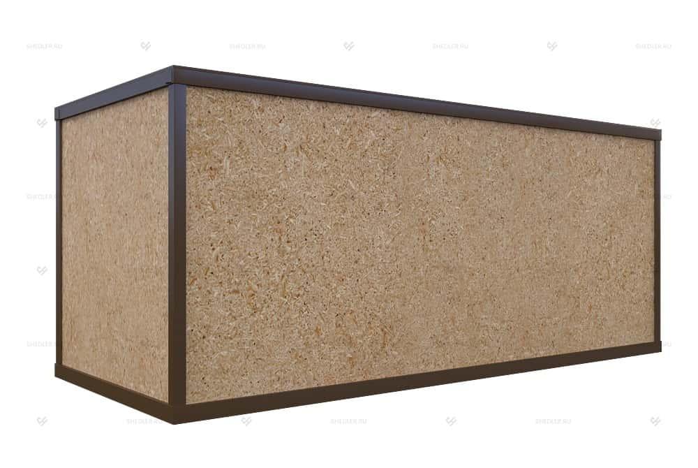 OSB или древесно стружечная плита представляет собой материал, изготовленный из древесной стружки, которая прессуется под высоким давлением с применением синтетических смол. Благодаря таким свойствам, как прочность и влагостойкость, материал OSB нашел широкое применение в строительстве в качестве отделочного материала для пола и стен. ОСП довольно легок в обработке – легко режется и крепится, что сильно облегчает процесс отделки помещений. ОСП является универсальным материалом, применяемым как для внешней, так и для внутренней отделки. Материал обладает хорошей звукоизоляцией, а в сочетании с утеплителем может обеспечить отличную теплоизоляцию внутри бытовки.