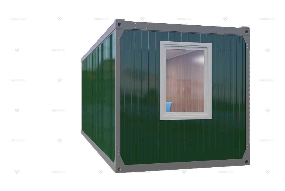 Одноэтажный сборно-разборный блок-контейнер размером 6,0м х 2,4м х 2,5 м и площадью 14,4 кв. м с металлической входной дверью и 1 окном размером 86 х 123 см может использоваться в быту и в коммерческих целях. Для установки не потребуется заливка фундамента и получение разрешений.