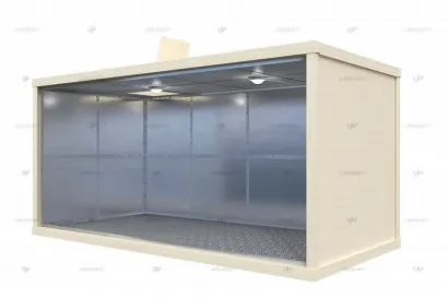 Между наружными и внутренними стенами уложен теплоизоляционный контур из негорючей базальтовой ваты толщиной не менее 100 мм. Утепление стен пола и потолка способствует поддержанию внутри блок-контейнера стабильного температурного режима, который необходим для бесперебойного функционирования лабораторного, медицинского и промышленного оборудования.