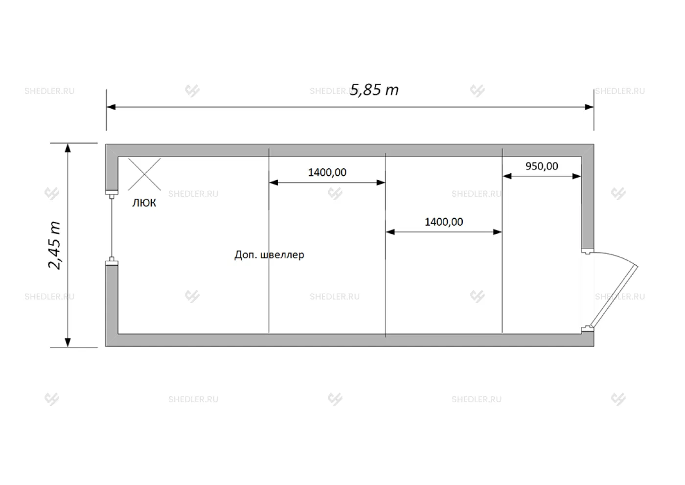 Прежде всего, это высокая прочность, которая обеспечивается сварным каркасом из швеллера и уголка. Благодаря стальному профилю увеличенного размера технический вагончик выдерживает не только ветровые нагрузки, но и значительные вес оборудования. Справиться с массивными агрегатами также помогает и дощатый пол, выровненный ориентированно-стружечной плитой и покрытый алюминиевым рифленым листом. Такое покрытие не имеет декоративного эффекта, зато обладает повышенной износоустойчивостью и фрикционным эффектом (на выпуклых рифлях невозможно поскользнуться).