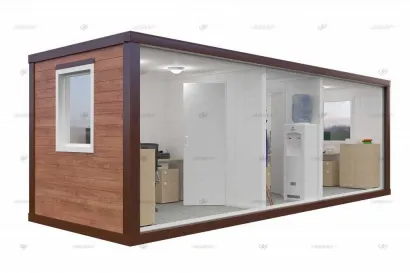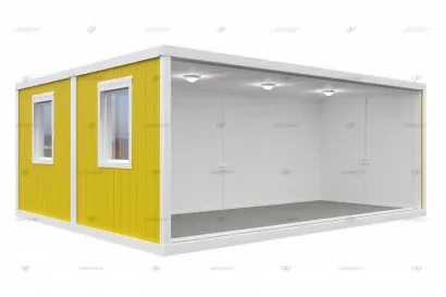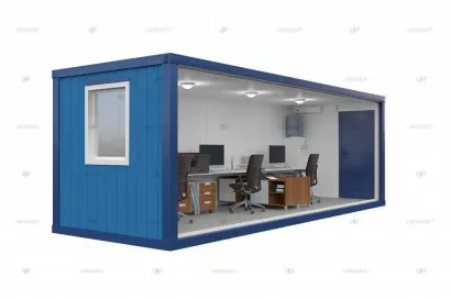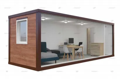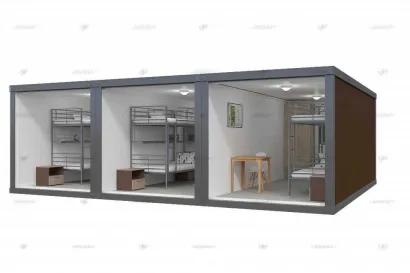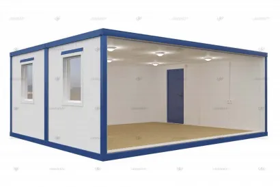 Прочные контейнеры из сэндвич-панелей для использования в качестве временного жилья или складского помещения.