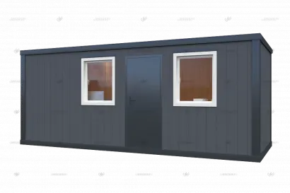 Блок контейнеры выполнены на базе сварной конструкции из металлического профиля. Внешняя отделка выполнена из сэндвич-панелей, а изнутри контейнер оформлен с помощью листов ДВП или также сэндвич-панелей. Пол во всех блок контейнерах SHEDLER выполнен из OSB, крыша плоская и изготовлена из листовой стали. Каждый контейнер имеет окна, которые можно заказать в двух вариантах: деревянные с двойным остеклением или поворотно-откидные ПВХ. Также, может быть установлен душ, туалет и проведена электрика для более комфортного использования.