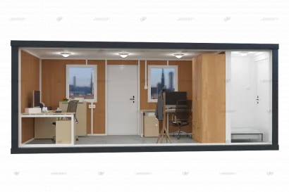 На макетах представлен стандартный комплект контейнеров, по вашему запросу мы можем укомплектовать контейнер техникой и мебелью.