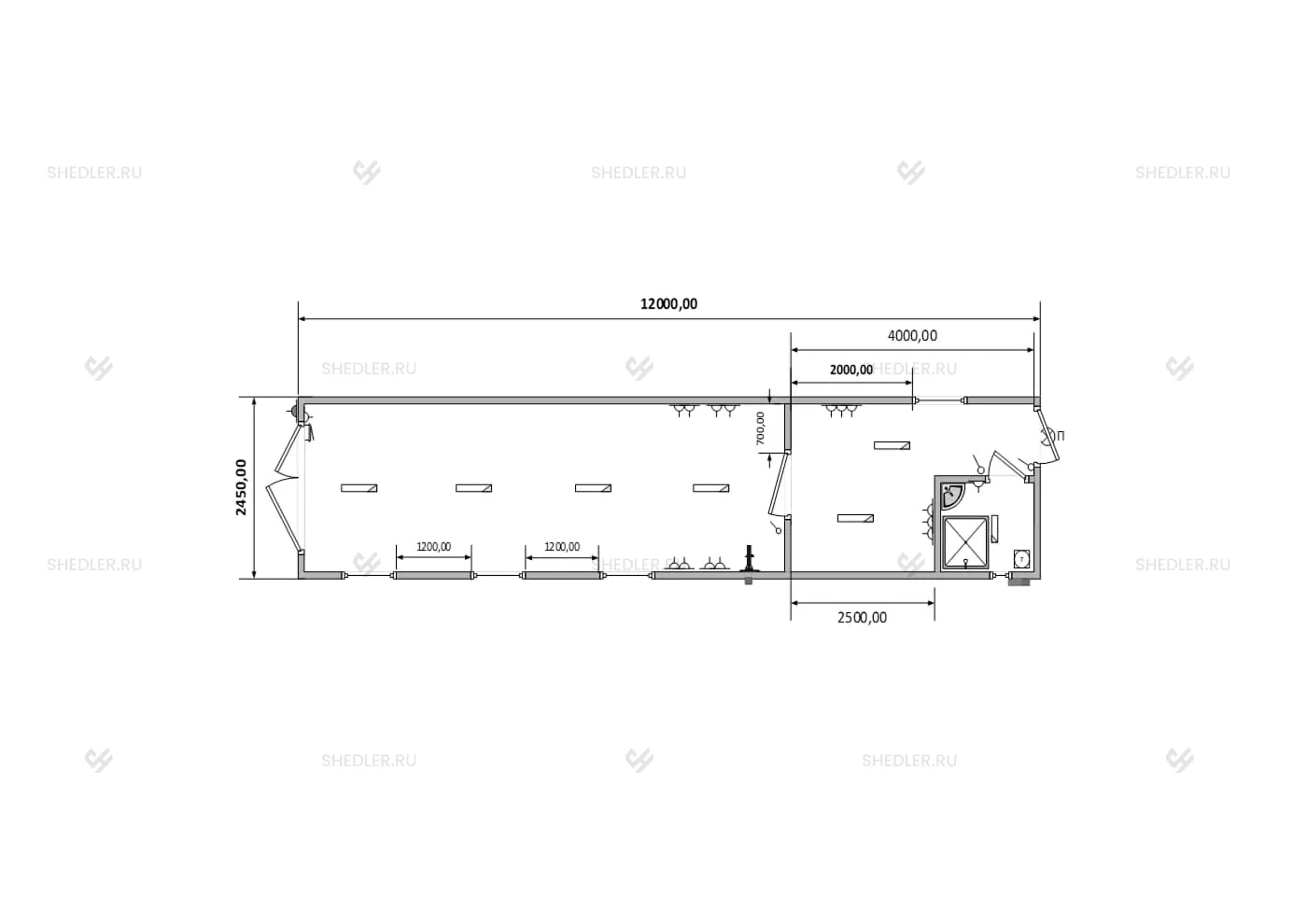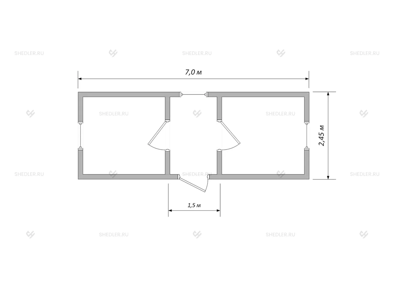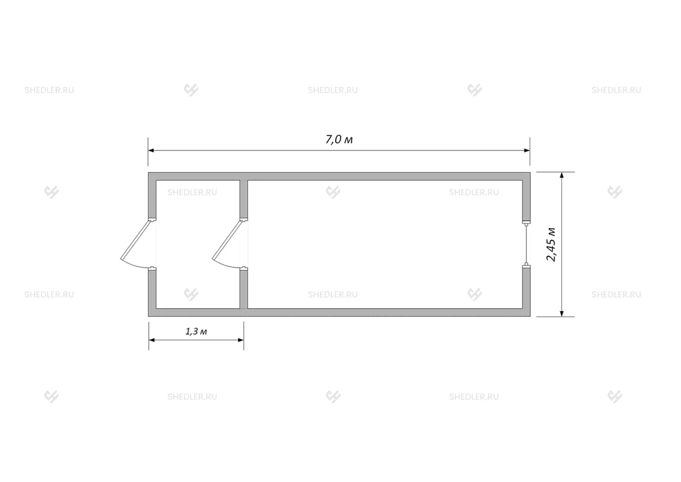 7,0 x 2,45 х 2,45 м