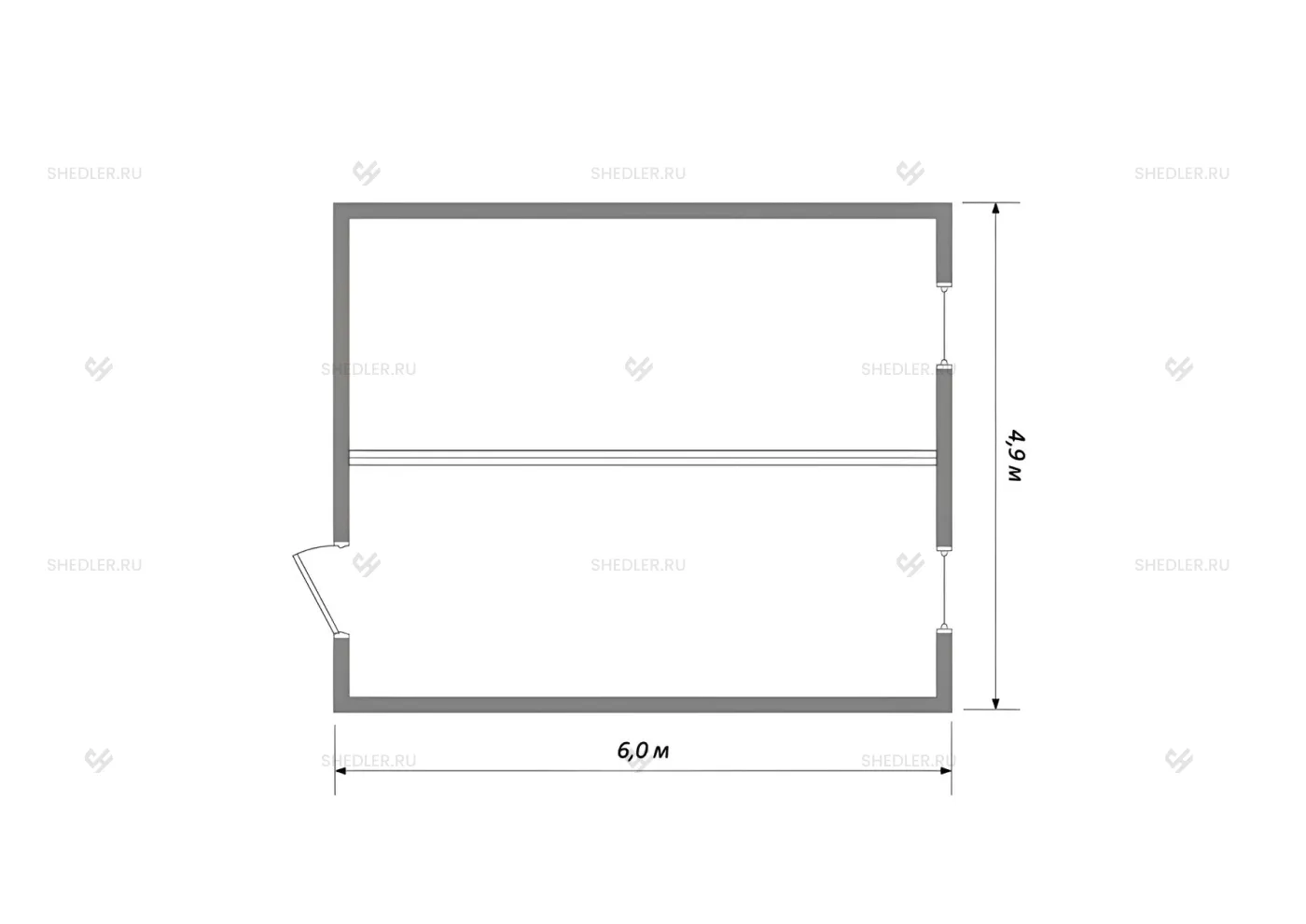 6,0 x 4,9 x 2,45 м