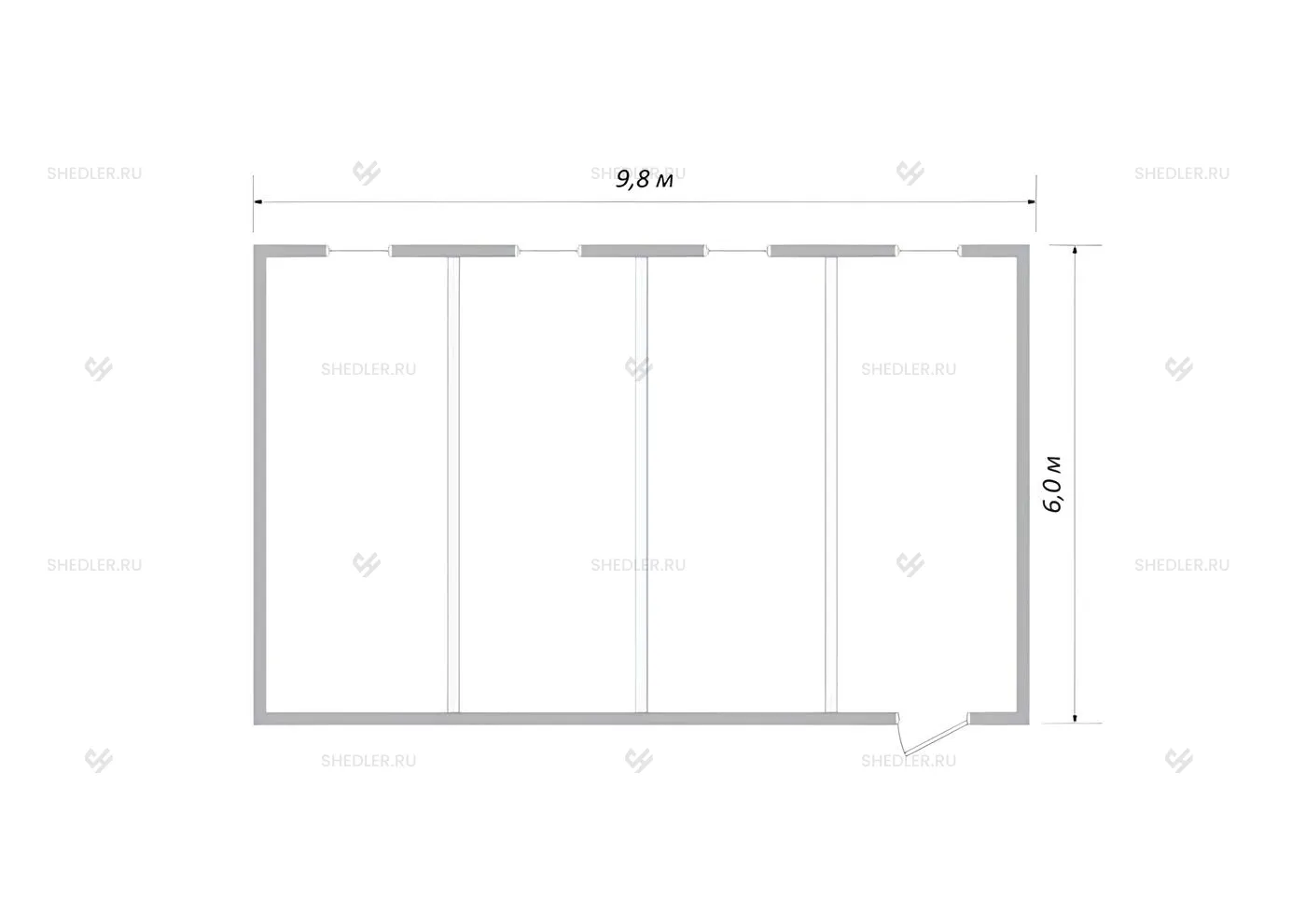 6,0 x 9,8 x 2,45 м