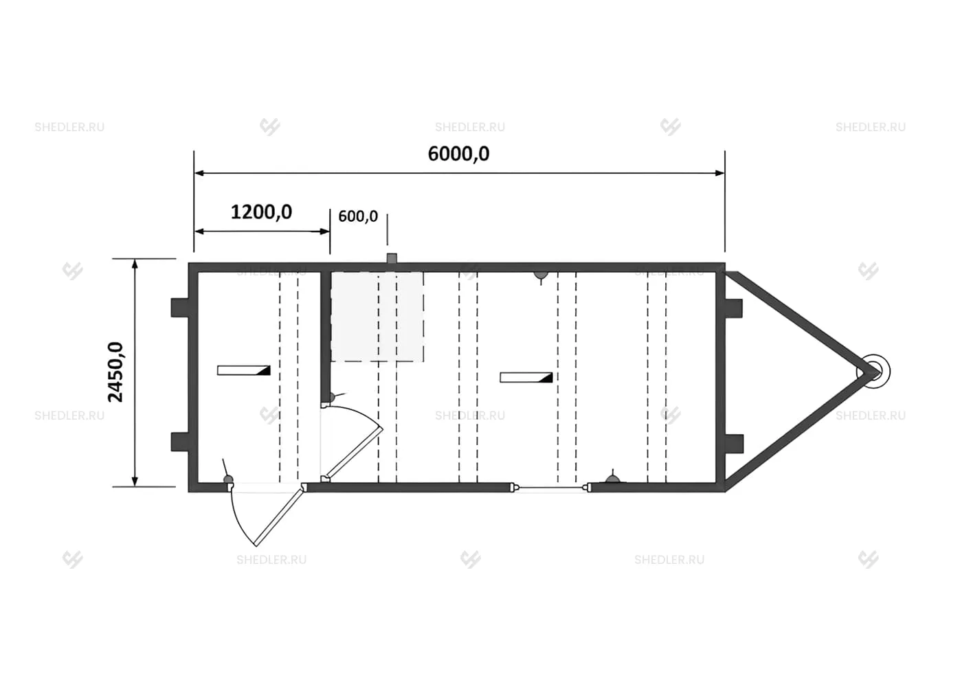 6,0 x 2,45 х 2,45 м