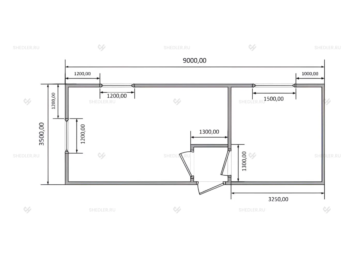 9,0 x 3,5 x 2,72 м