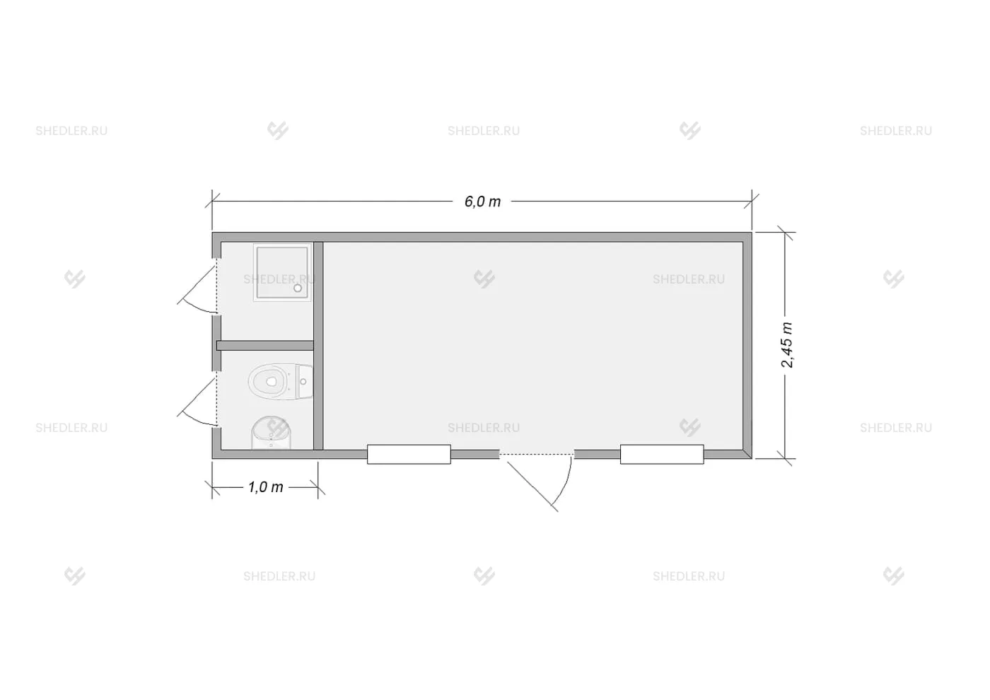 6,00 х 2,45 х 2,45 м