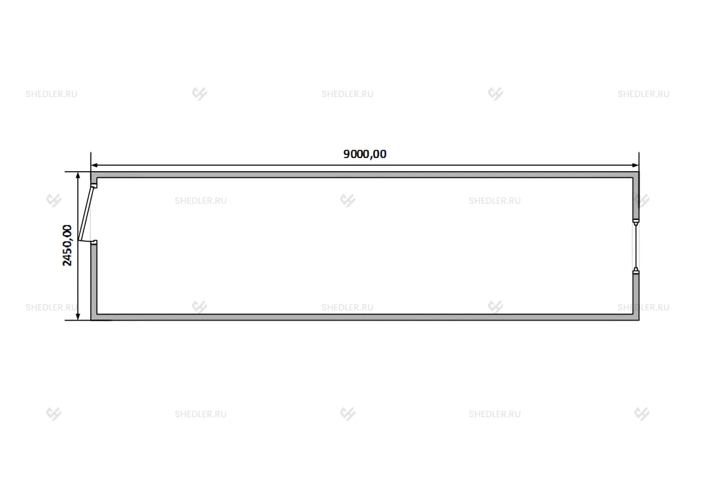 9,0 x 2,45 х 2,45 м