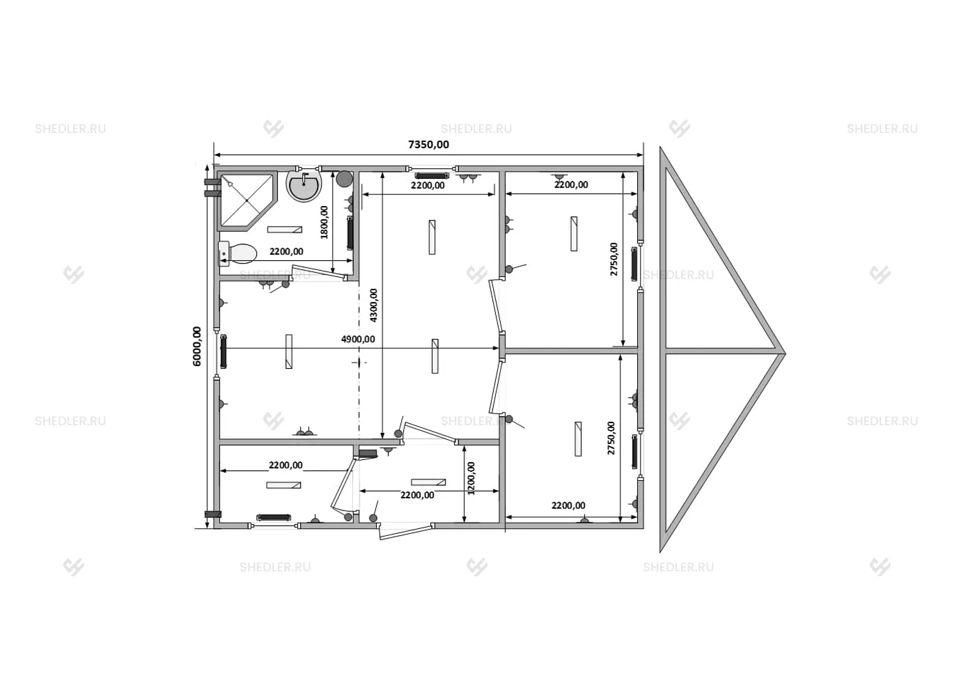 6,0 x 7,35 х 2,45 м